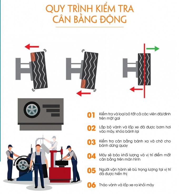 Quy trình kiểm tra cân bằng động lại lốp xe oto