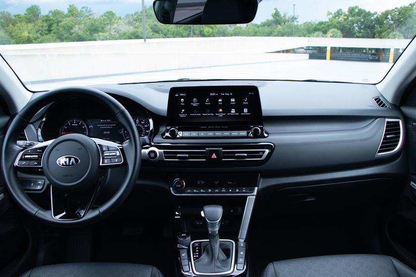Hầu hết các phiên bản Seltos đều có màn hình cảm ứng 8 inch, một số bản cao cấp được trang bị màn hình cảm ứng 10,15 inch. Trong khi đó, tại Việt Nam, phiên bản Seltos cơ sở còn không có màn hình giải trí cảm ứng.