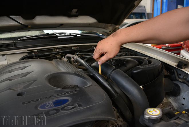 Công việc này khá đơn giản, tài xế chỉ cần mở nắp capô, rút que thăm dầu trên động cơ để kiểm tra. Với dầu động cơ, nên chú ý vào 2 yếu tố mức dầu và màu sắc. Nếu mực dầu thấp, bạn nên bổ sung. Dầu còn tốt phải có màu nâu ánh vàng và không dính cặn bẩn. Nếu dầu có màu tối với nhiều cặn bẩn, bạn phải thay dầu cũng như bộ lọc dầu.