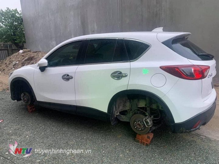 | Một chiếc mazda CX5 đã bị trộm cả 4 chiếc lốp xe. |