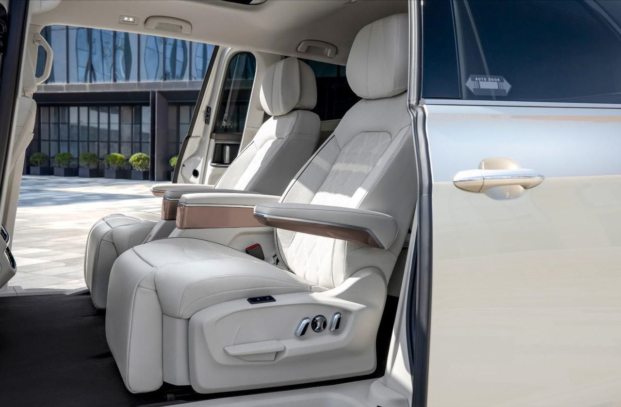 Kích thước tổng thể dài x rộng x cao lần lượt tương ứng 5.346 x 1.976 x 1.781 (mm) cùng chiều dài cơ sở 3.180 mm là mấu chốt giúp xe mang lại không gian nội thất rộng rãi, thoải mái cho 7 người sử dụng. Trong đó, nổi bật nhất chính là hàng ghế thứ hai độc lập kiểu thương gia với 10 chức năng tiện nghi như chỉnh điện ngả lưng 70 độ, bệ đỡ chân chỉnh điện, ghế massage 3 chế độ và 3 cường độ, đệm hơi tựa lưng chỉnh 4 hướng, tựa tay có hộc để ly, điện thoại và cổng sạc… Trong khi, hàng ghế thứ 3 được thiết kế cho 3 hành khách với khoảng để chân rộng rãi, cho phép gập lưng ghế theo tỷ lệ 60:40 để mở rộng khoang hành lý khi cần thiết.