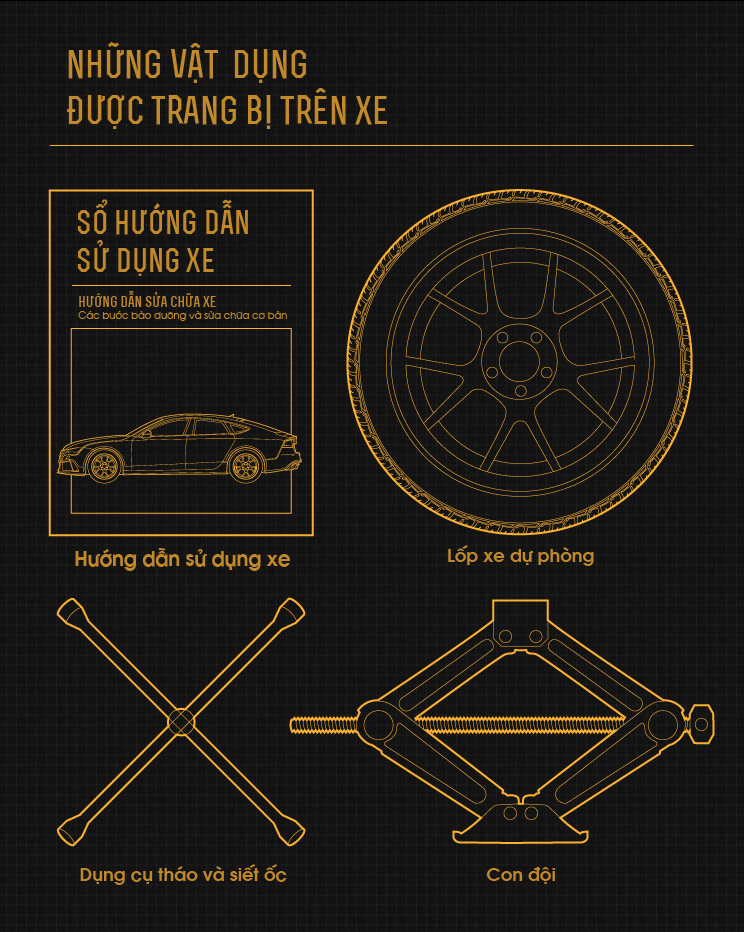 Các vật dụng dưới dây cần được trang bị trên xe của bạn: