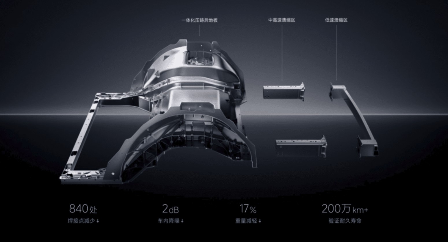 Theo tuyên bố, Xiaomi là hãng ô tô trong nước duy nhất tự phát triển cùng lúc công nghệ đúc khuôn vật liệu hợp kim và hệ thống dập cụm thiết bị lớn.