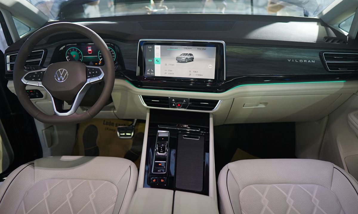 Bên trong, khoang lái Volkswagen Viloran trang bị vô lăng 4 chấu thể thao tích hợp các tính năng như: ga tự động, giới hạn tốc độ, duy trì làn đường và nhiều tính năng khác. Màn hình Digital 10.3 inch hiển thị tất cả thông tin cần thiết và hệ thống điều hòa được điều khiển bằng cảm ứng.