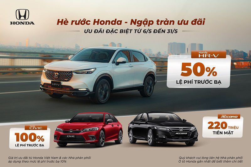 Với mong muốn mang đến cho khách hàng nhiều hơn nữa cơ hội trải nghiệm các mẫu xe ô tô Honda và tận hưởng những khoảnh khắc trọn vẹn bên gia đình, Honda Việt Nam (HVN) phối hợp cùng hệ thống Nhà Phân phối triển khai chương trình khuyến mại hấp dẫn từ ngày 06 đến hết ngày 31 tháng 05 năm 2024.
