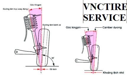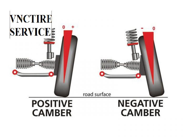 - Góc Camber dương (+): là phía trên bánh xe nghiêng ra ngoài, phía dưới nghiêng vào trong, gay mòn bên ngoài của lốp.