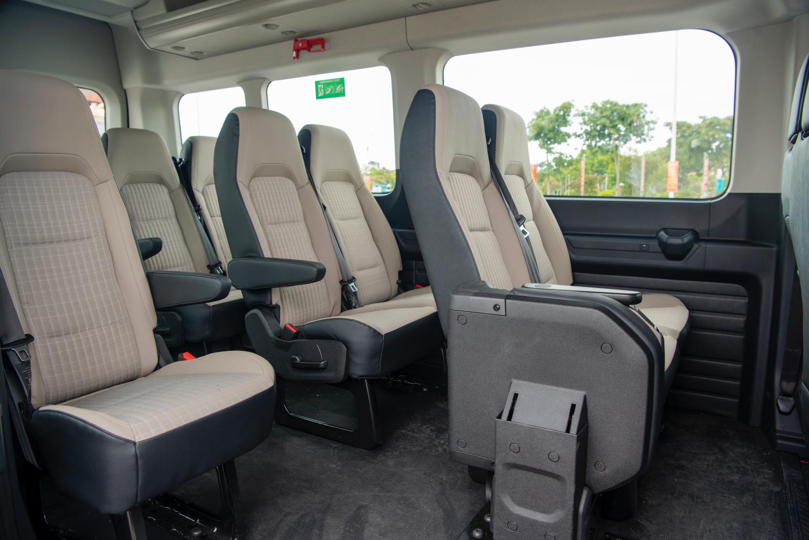 Bố trí chỗ ngồi linh hoạt gồm chỗ ngồi đơn, kép và ba chỗ ngồi với tùy chọn gấp gọn cung cấp không gian rộng rãi cho hành khách và hành lý. Sự linh hoạt này cho phép khách hàng tùy chỉnh nội thất để đáp ứng từng nhu cầu cụ thể.
