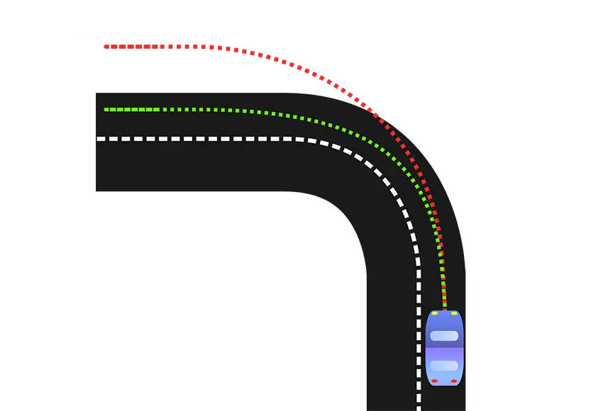 Thừa lái là hiện tượng đánh lái không nhiều nhưng xe quay vòng/chuyển hướng quá nhanh và đột ngột