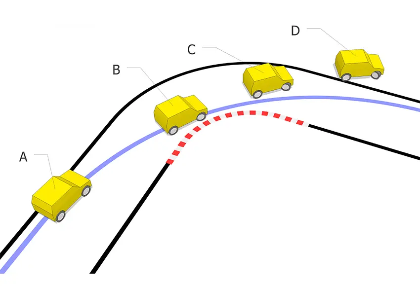 - Khi xe lấy lại độ bám, bắt đầu đánh lái vào cua