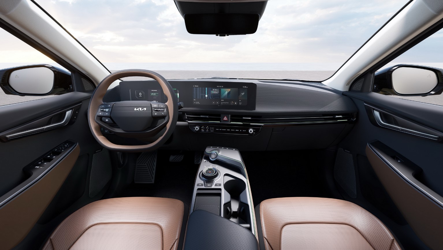Nội thất của Kia EV6 2025 cũng có một số thay đổi. Nổi bật nhất màn hình toàn cảnh cong nâng cấp chứa cả cụm đồng hồ kỹ thuật số và màn hình thông tin giải trí kết hợp với Apple CarPlay và Android Auto không dây.