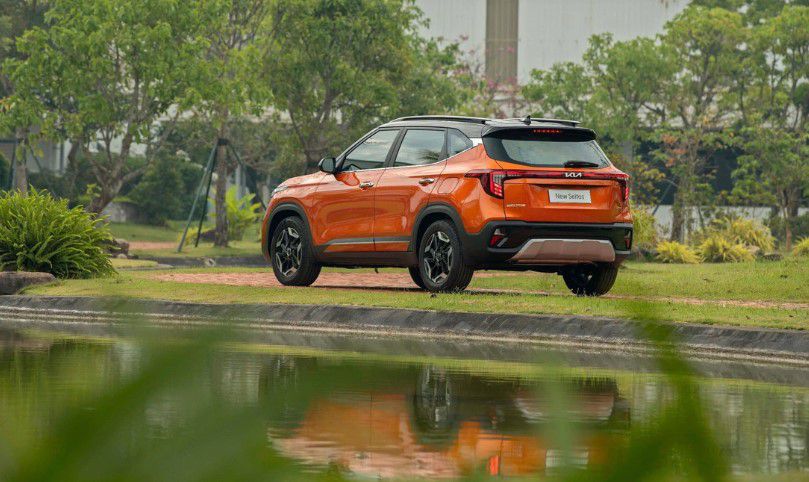 Phía sau, đuôi xe Kia Seltos được mở rộng theo phương ngang để tô đậm sự bề thế, ổn định và chắc chắn. Cụm đèn hậu dạng LED star-map tạo hình đồng điệu với phía trước, kết hợp ốp cản thể thao kích thước lớn.