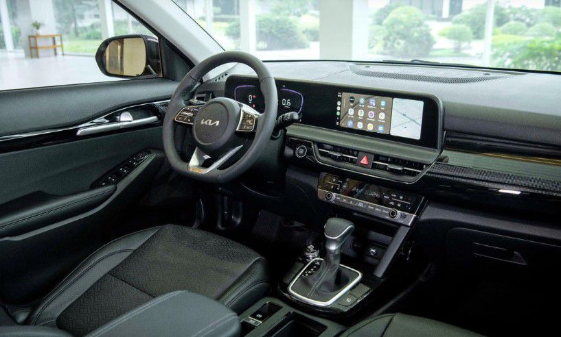 Bên trong, nội thất Seltos 2024 cao cấp hơn, chủ yếu sử dụng vật liệu da mềm mại kết hợp ốp kim loại và tông đen chủ đạo. Ngoài ra về mặt danh sách tiện nghi, Seltos được nâng cấp thêm những trang bị hàng đầu phân khúc, dẫn đầu xu hướng về công nghệ như màn hình nối liền Panoramic kết hợp giữa đồng hồ 10,25 icnh và màn hình giải trí 10,25 inch, kết nối Apple Carplay và Android Auto không dây, ghế lái chỉnh điện 8 hướng và lần đầu tiên trong phân khúc có màn hình HUD, lẫy chuyển số thể thao.