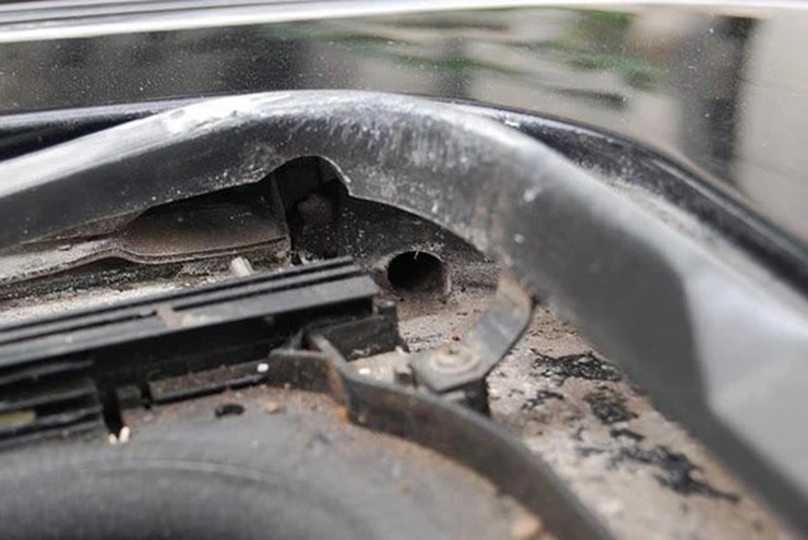 Đường thoát nước bố trí dọc theo thân xe, nên nếu như bị nghẹt nước xe không thoát ra mà chảy ngược vào bên trong gây tình trạng thấm dột, ẩm mốc khoang nội thất. Bên cạnh bụi và lá cây thì khí hậu nước ta nóng ẩm quanh năm, dễ làm các chi tiết nhựa hoặc ron cao su bị hư hỏng, nứt gãy dẫn đến việc không ngăn nước mà tạo nên hốc ứ đọng nước thấm vào xe.