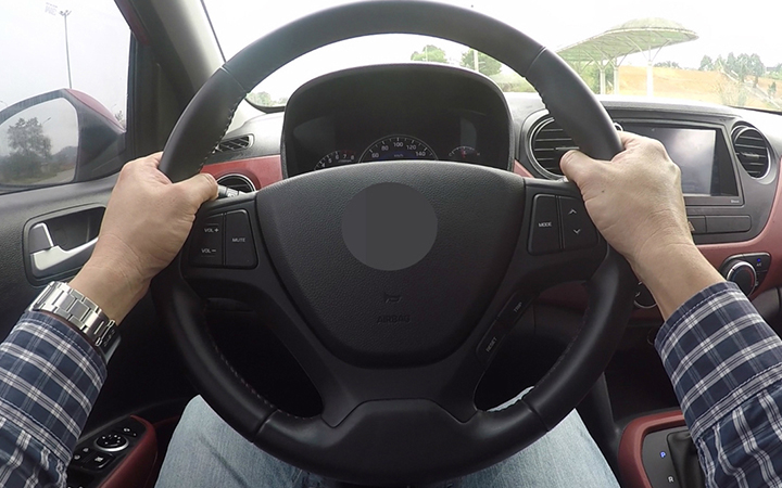 1. Tay trên vô-lăng ở vị trí bình thường.