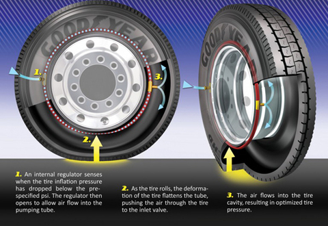 Hệ thống duy trì áp suất lốp được Goodyear phát triển nhắm đến xe thương mại. Thống kê từ Hiệp hội vận tải đường bộ Mỹ (American Trucking Association) năm 2008 hơn một nửa số sự cố của xe tải và xe rơ-mooc có liên quan đến lốp. Vấn đề bảo dưỡng lốp trở nên đặc biệt quan trọng với các ông chủ quản lý đội xe. Hành động đơn giản nhất là giữ áp suất hơi ổn định theo tiêu chuẩn bởi điều này không chỉ cải tiến mức tiêu thụ nhiên liệu mà còn tăng độ bền hoa lốp (ta-lông).