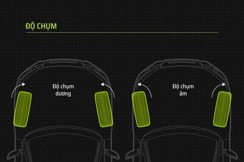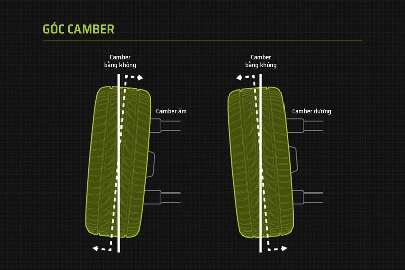 Đây là góc nghiêng của bánh xe (góc mà bánh xe úp vào trong hoặc ngả ra ngoài) khi nhìn từ phía trước của xe. Phần bánh xe nghiêng vào trong gọi là Camber âm (-) và phần bánh xe nghiêng ra ngoài sẽ tạo thành góc camper dương (+)