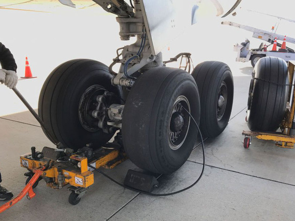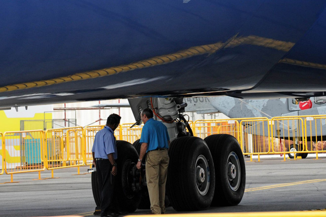 Sau mỗi lần hạ cánh, tất cả các lốp máy bay sẽ được kiểm tra về độ hao mòn.
