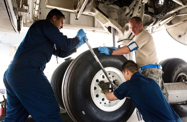 Tình trạng và áp suất lốp phải được kiểm tra cẩn thận trước mỗi lần cất cánh bởi nhân viên bảo trì và một trong những phi công.