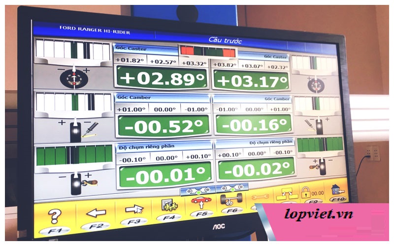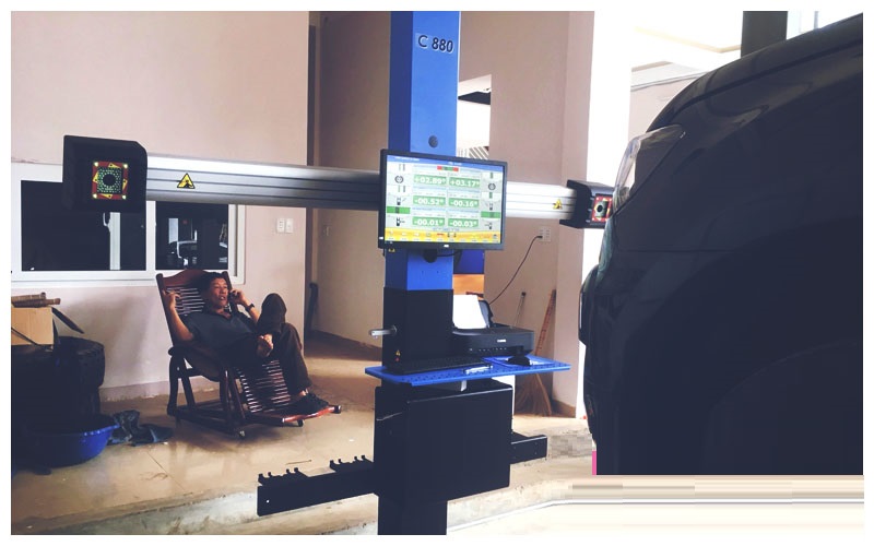 - Thiết bị cân chỉnh góc lái sẽ tiến hành kiểm tra và thông báo sai lệch nếu có