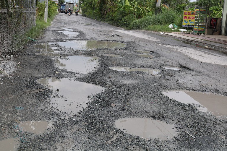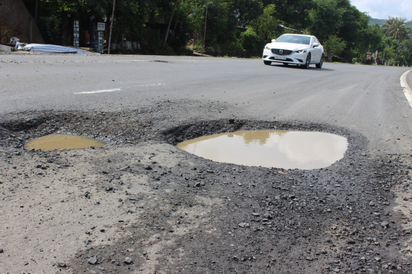 Khi lái xe chạy qua, tác động ngoại lực lên, khiến bề mặt đường vỡ bung ra, quá trình tác động cứ tiếp diễn khiến nó hình thành các hố lớn.