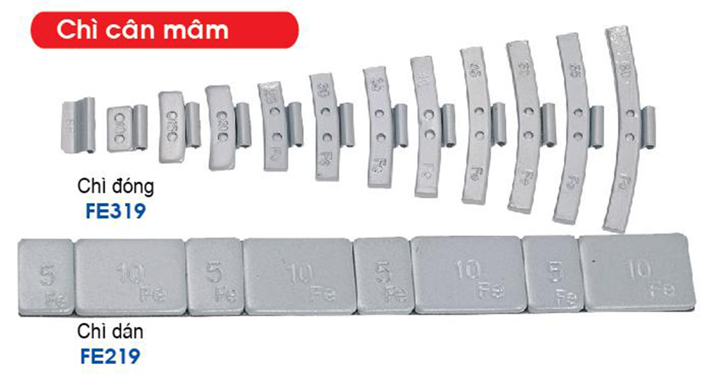 Thông thường thì mọi người để ý sẽ thấy trên các mâm bánh xe xuất hiện các miếng chì hình chữ nhật, hình trụ nhỏ dán bên trong mâm hoặc đóng trên rìa mép mặt ngoài của mâm xe. Những miếng chì cân bằng mâm hiện chỉ có hai loại là dạng dán và đóng đi kèm với nhiều kích thước khác nhau tùy thuộc vào trọng lượng (gram).