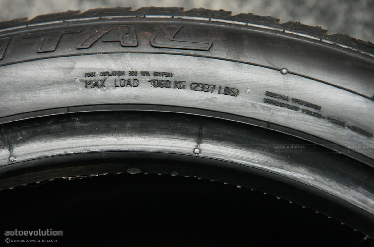 Ký hiệu áp suất lốp và tải trọng cho phép tối đa thường được in tại mép bên trong của lốp (Trong Hình 3, có thể thấy tải trọng tối đa của lốp là 2337 lbs (tương đương 1060 kg), độ căng tối đa là 330 kpa (tương đương 51 PSI)). Rõ ràng, hai chỉ số này sẽ thay đổi tùy chủng loại, kích thước và các yếu tố khác của lốp.