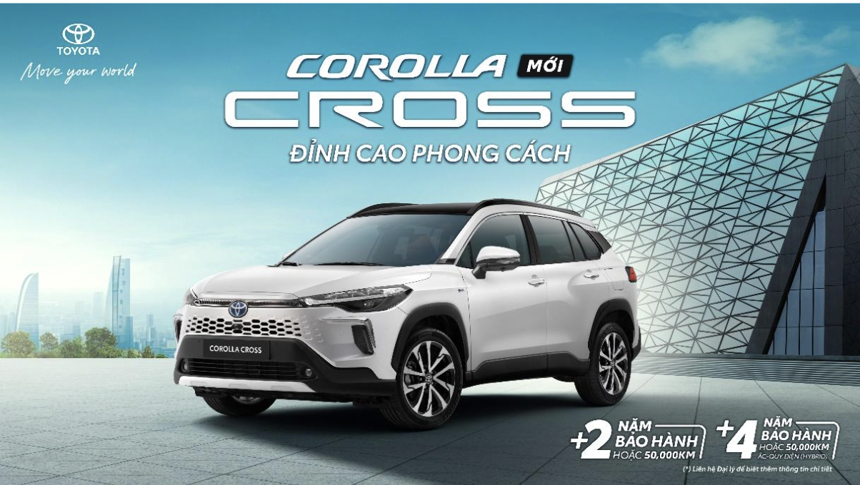 Tính đến thời điểm hiện tại, Toyota Việt Nam đã mang đến cho khách hàng lựa chọn phiên bản Hybrid ở hầu hết các phân khúc. Điều này cũng thể hiện rõ nỗ lực của Toyota Việt Nam trong việc cung cấp các giải pháp di chuyển xanh phù hợp hơn với cơ sở hạ tầng và thói quen sử dụng xe của khách hàng Việt. Ngoài ra, để mang đến sự an tâm tuyệt đối, Toyota Việt Nam vẫn tiếp tục dành tặng Gói gia hạn bảo hành 2 năm/50.000 km (tùy điều kiện nào đến trước) dành cho khách hàng mua xe Corolla Cross mới. Đặc biệt, đối với phiên bản Corolla Cross Hybrid, có thêm gói gia hạn bảo hành cho Ắc-quy điện là 4 năm/50.000 km (tùy điều kiện nào đến trước). Theo đó, tổng thời gian bảo hành của xe Corolla Cross lên tới 5 năm/ 150.000 km (tùy điều kiện nào đến trước) và thời gian bảo hành cho Ắc- quy điện trên phiên bản Corolla Cross Hybrid sẽ là 7 năm/ 150.000 km (tùy điều kiện nào đến trước), áp dụng đến hết ngày 31/12/2024.