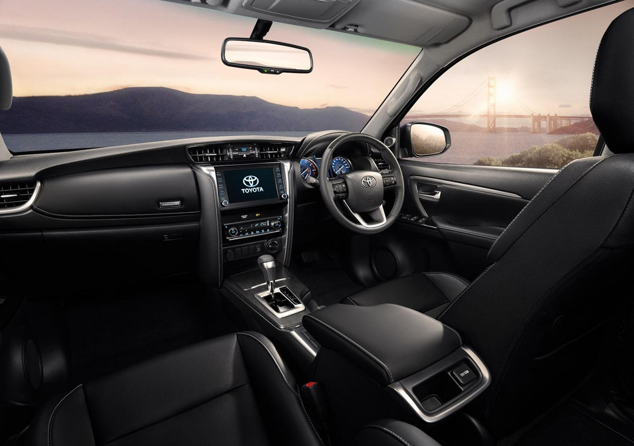 Hãng sẽ bán xe Toyota Fortuner facelift mới với nội thất toàn màu đen hoặc nâu nhạt. Các tính năng mới khác ở bên trong bao gồm đèn gầm LED, hệ thống âm thanh JBL 11 loa, cảm biến đỗ xe phía trước và camera 360 độ.
