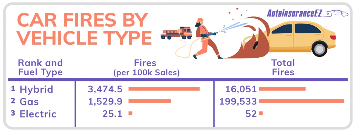 Một nghiên cứu mới đây do AutoInsuranceEZ, một công ty bảo hiểm của Mỹ thực hiện dựa trên dữ liệu từ Ban An toàn Giao thông Vận tải Quốc gia (NTSB), Cục Thống kê Giao thông Vận tải (BTS) và dữ liệu thu hồi của chính phủ Mỹ cho thấy, xe có động cơ đốt trong có số vụ cháy cao hơn đáng kể so với xe chạy hoàn toàn bằng điện.