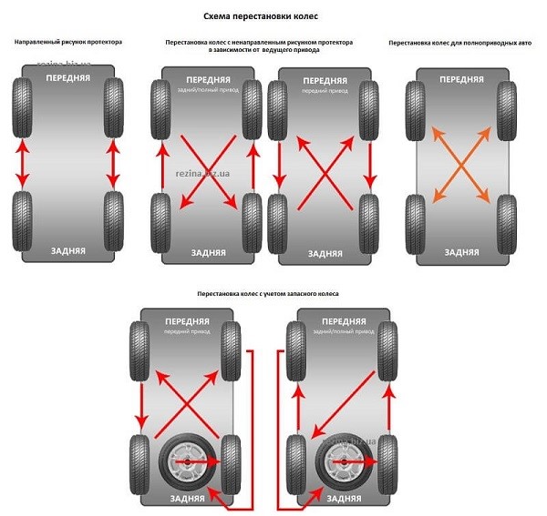 Hai bánh trước chuyển thẳng xuống bánh sau. Hai bánh sau đổi chéo lên trước.