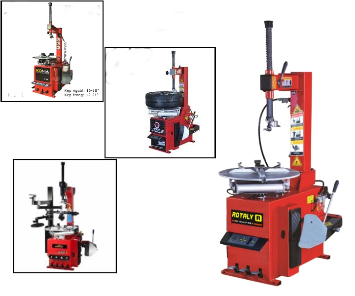 | Đặc điểm xe máy | Máy ra vào lốp xe điện | Máy ra vào lốp xe máy, xe ô tô con dưới 16 chỗ, xe tải dưới 3 tấn | Máy ra vào lốp xe ô tô du lịch, xe khách 29 chỗ | Máy ra vào lốp xe ô tô tải, container |