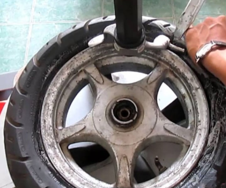 - Dùng dung dịch bôi trơn quanh mép vỏ lốp xe